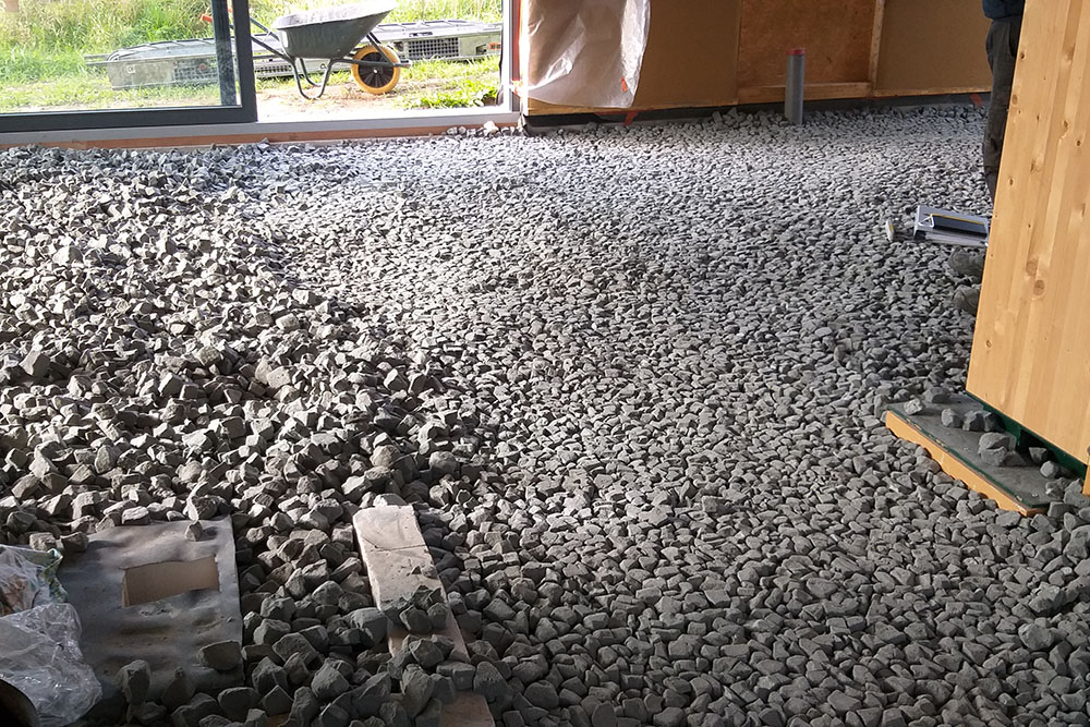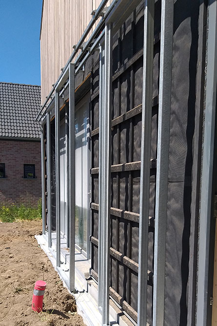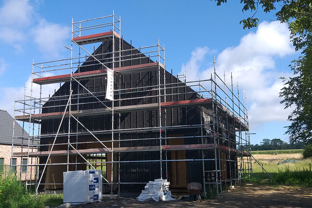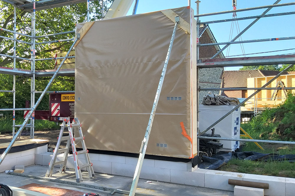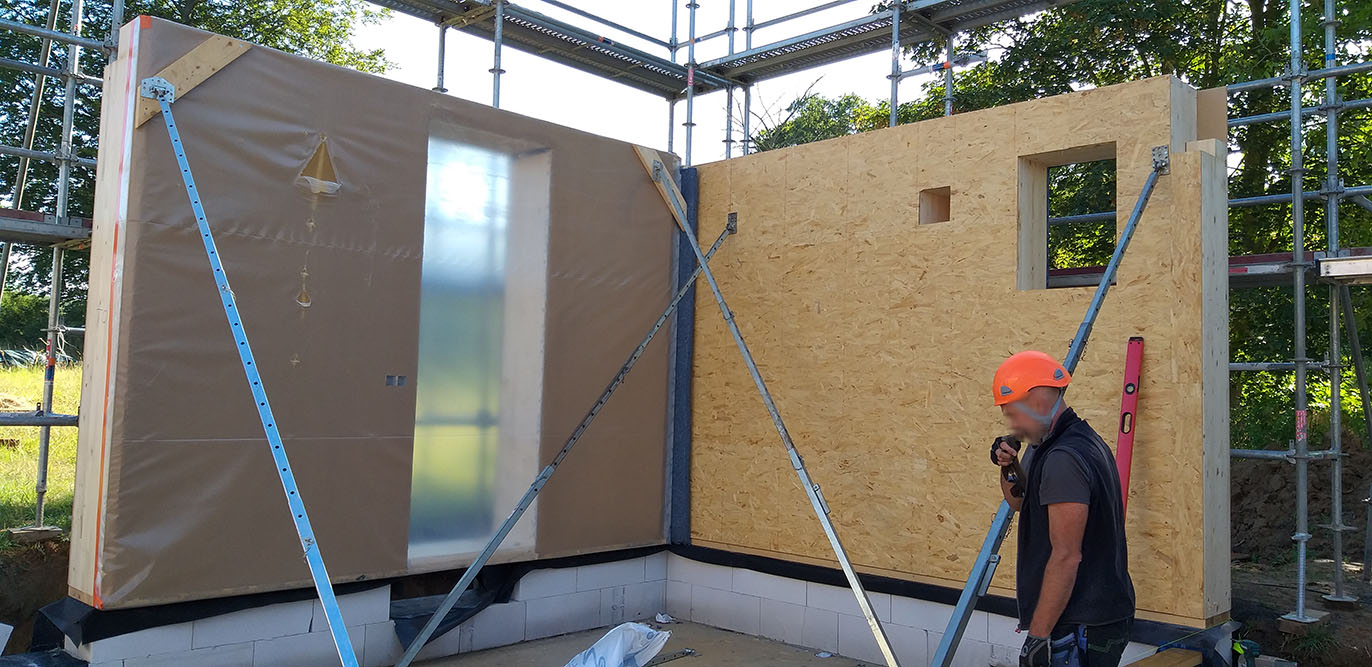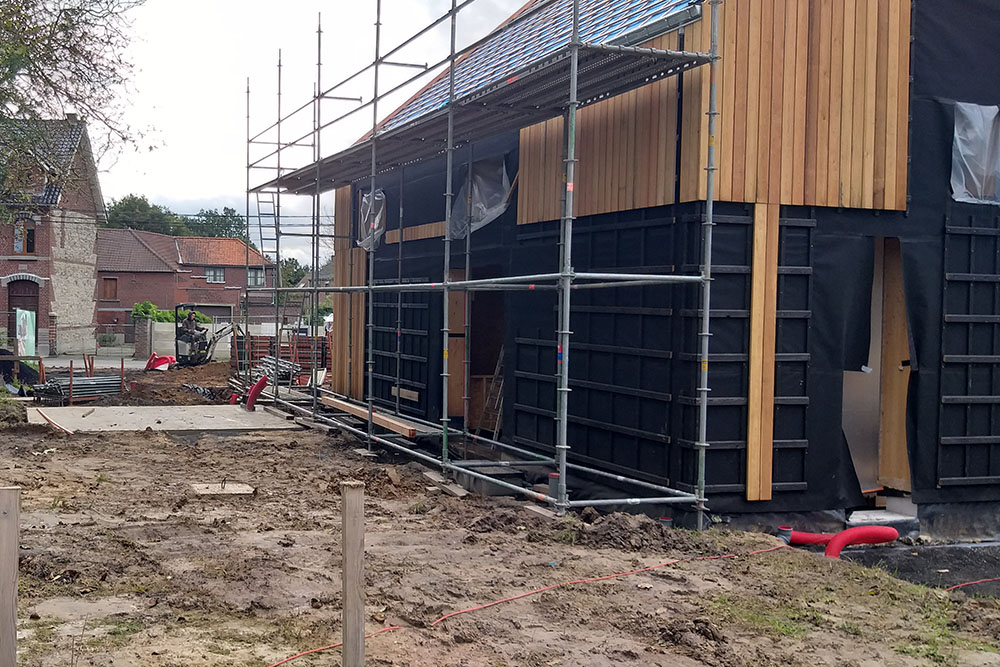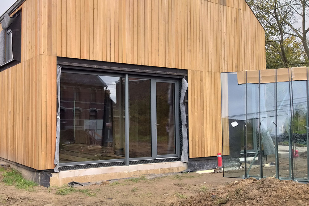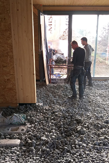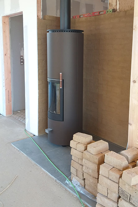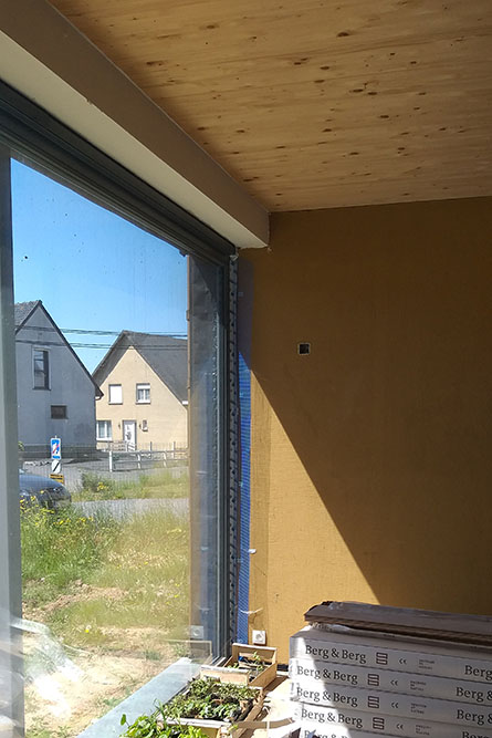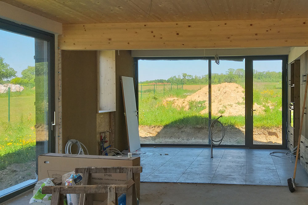 Avec les 46cm de paille et des châssis en triple vitrage, l’habitation est basse énergie, pratiquement passive.